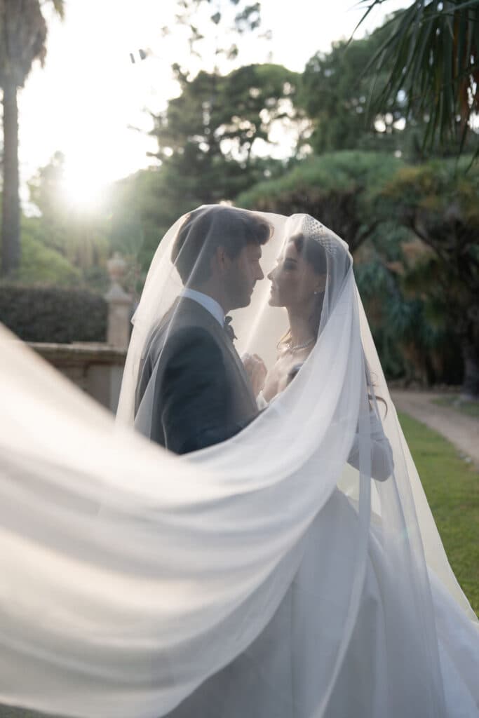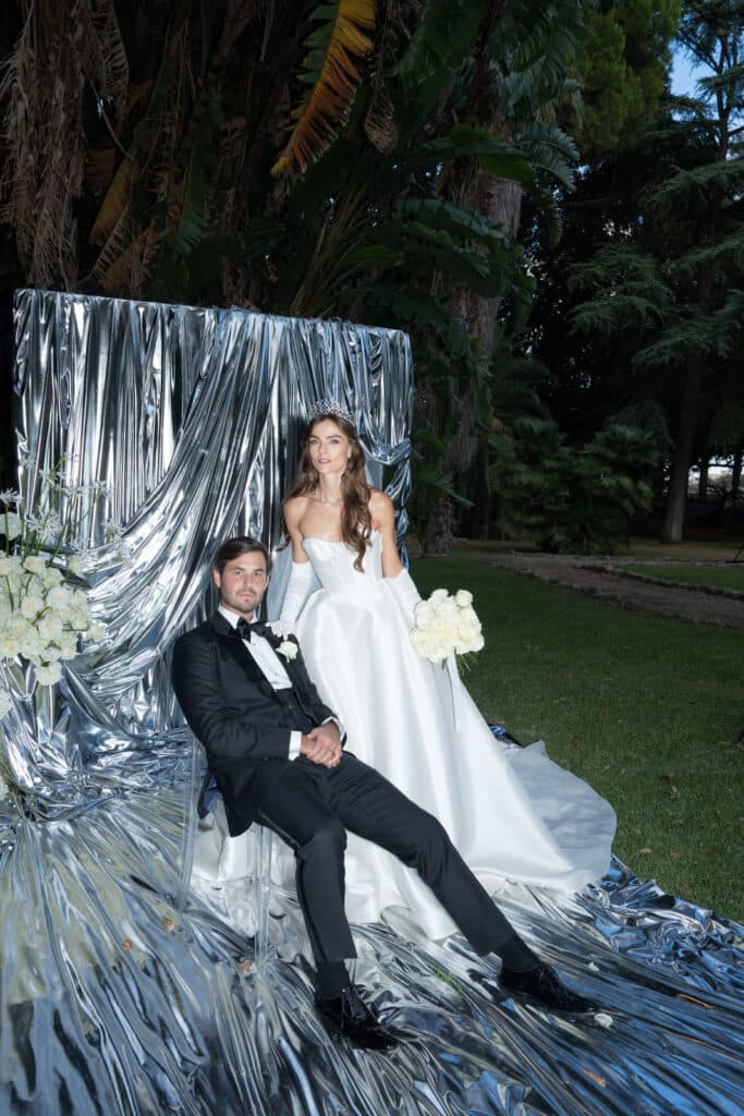 “There was a moment when I looked down from the terrace and saw our guests in the garden all looking incredibly beautiful in black, red or silver and I was mesmerized,” says Loli about their wedding.