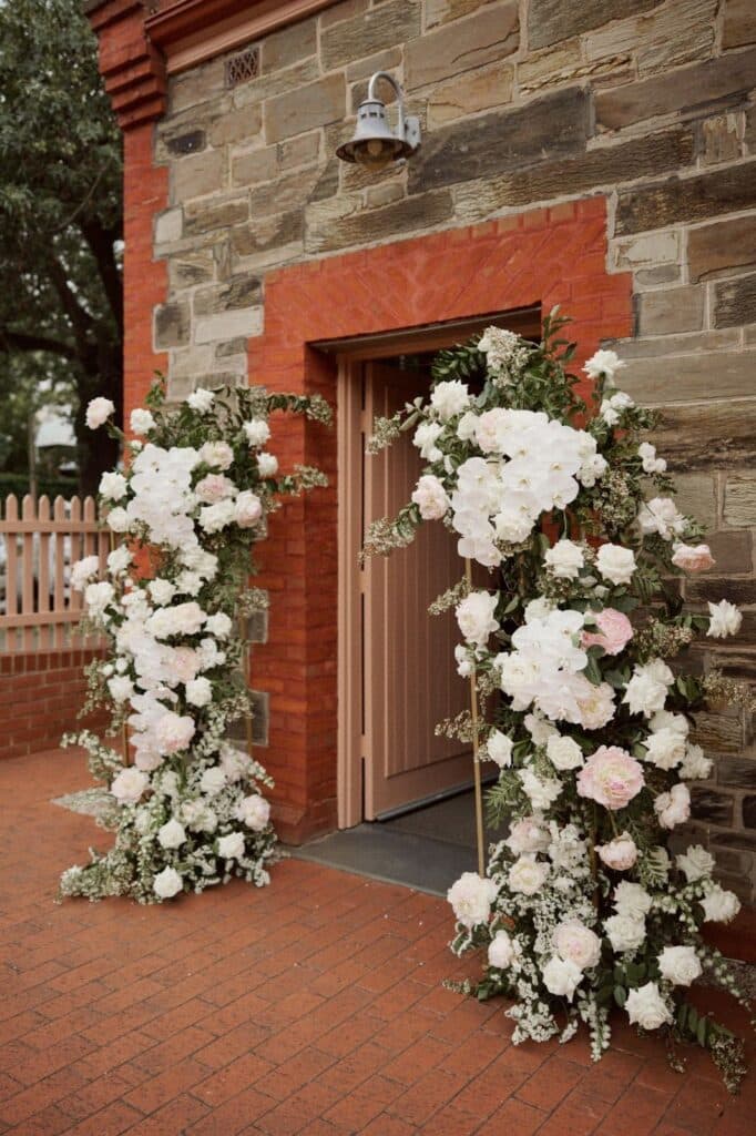 One of the most touching parts of the day? Their grandmothers–affectionately dubbed their “Flower Nonnas”–joined the bridal party on the drive to the ceremony. Their niece Zoe sat beside them…a multigenerational moment of beauty and grace.