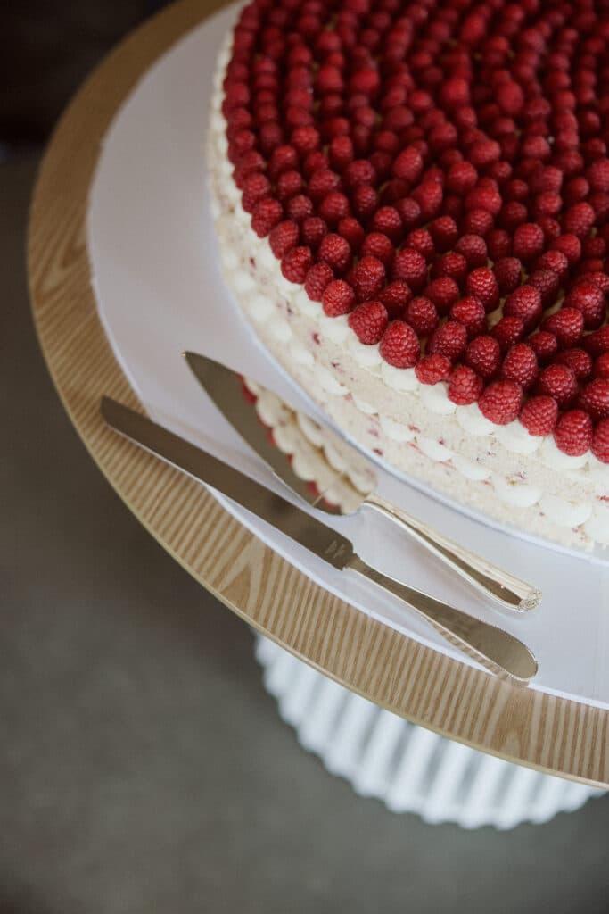 The celebration continued at Penfolds Magill Estate, where guests were welcomed into a candlelit underground tunnel. Live music from Behind the Veil played as guests watched Lyon Den Cakes assemble a towering 70cm white chocolate and raspberry showpiece in real time.