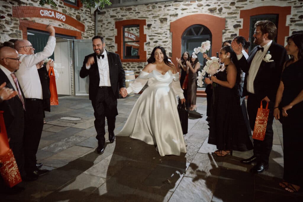 For the grand finale, the newlyweds made their exit under a sky full of fairy lights to Coldplay’s A Sky Full of Stars, riding away in a vintage Chevy Impala from Impressive Impalas Adelaide.