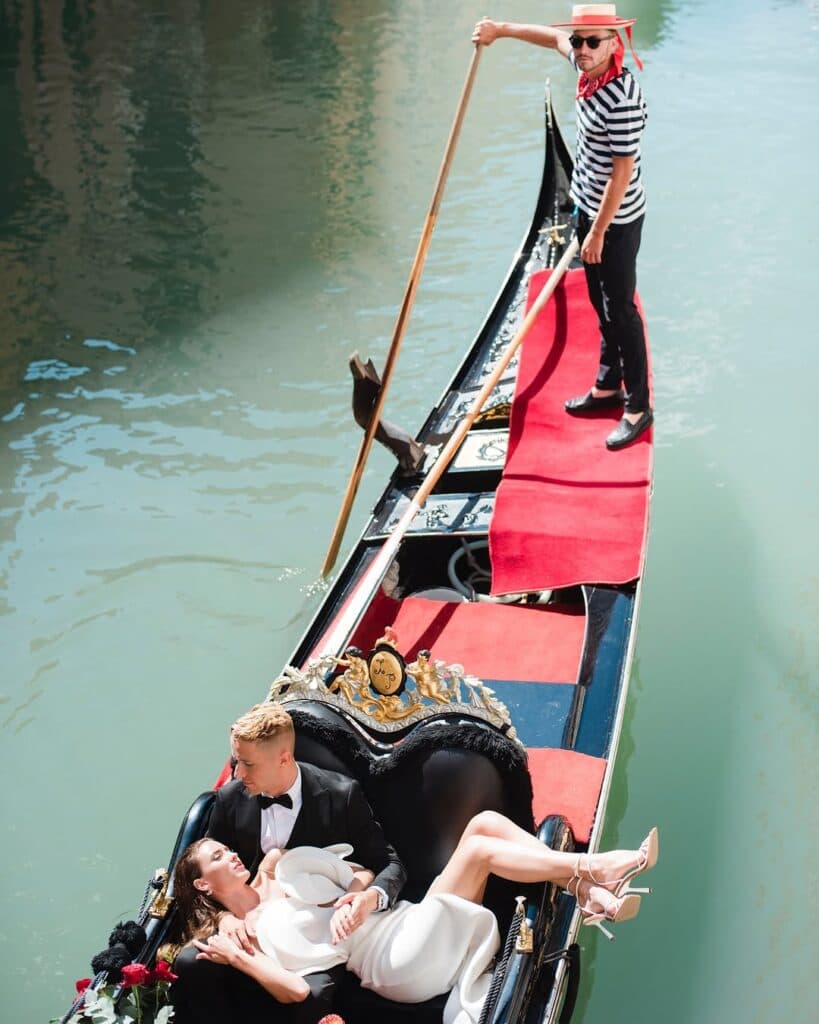 Beyond designing flower arches or an aisle of candles, the setting or area alone should be stunning enough to create a romantic ambiance. Luxury events planner Alessio Bof succinctly shares, “The location is the cornerstone.” Bof has over 10 years of experience in the hospitality industry and has planned weddings all across Europe. “Think a secluded clifftop villa overlooking the Amalfi Coast at sunset, a private gondola gliding through Venice’s hidden canals, or a candlelit ruin in Rome.”