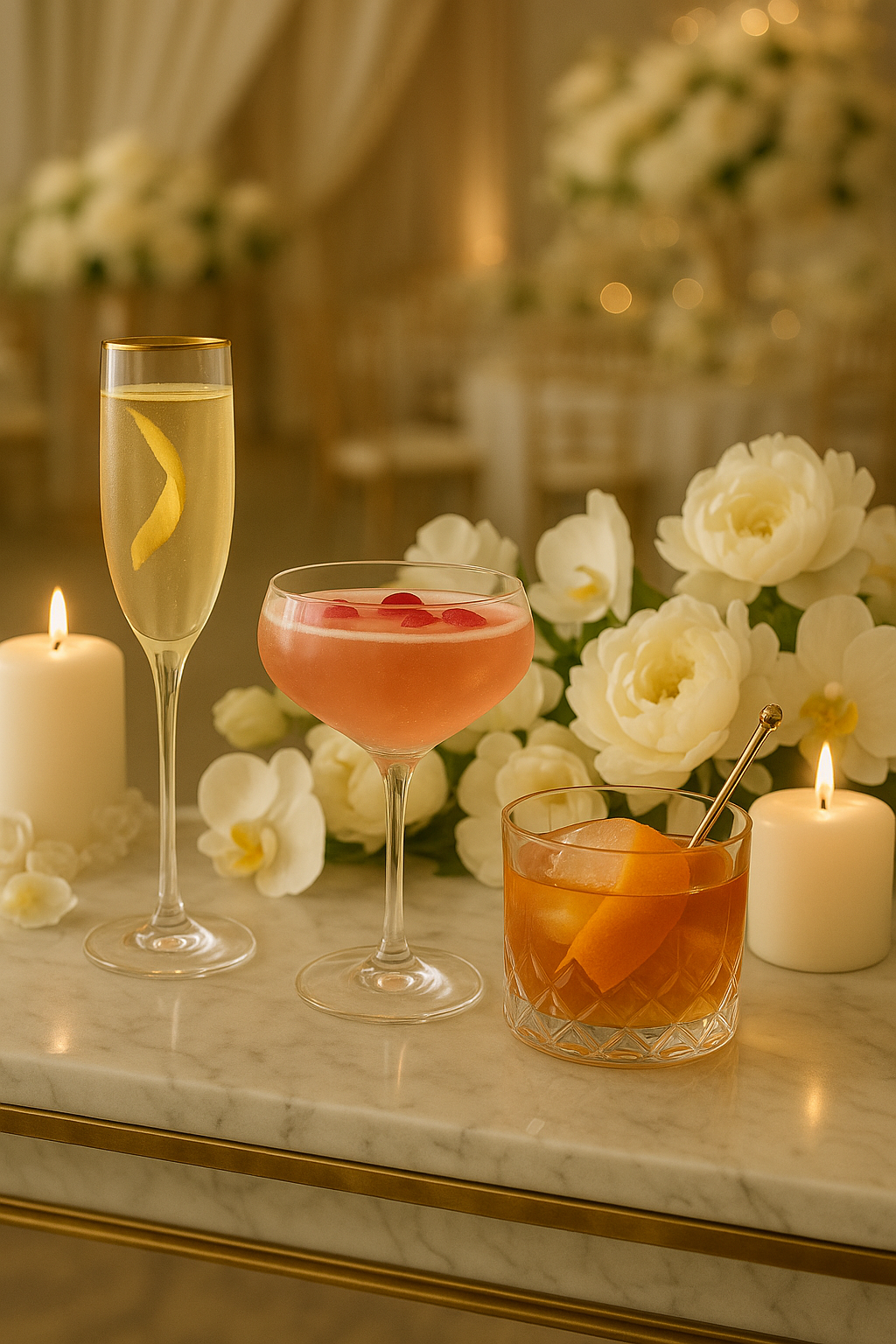 In the world of weddings–where every detail whispers something about your love story–why not let your signature wedding cocktail speak, too? Yes, the gown is the star of your bridal look. But your drink? It’s the supporting role with main-character energy. A drink that perfectly reflects your bridal personality–maybe it’s a timeless classic with a twist, or something floral, bold, and unexpected. Whatever your vibe, your cocktail should celebrate your style, your story, and your spotlight moment