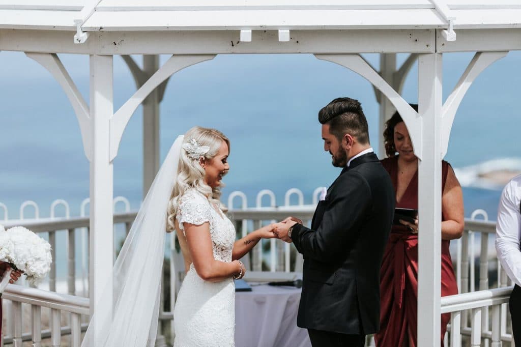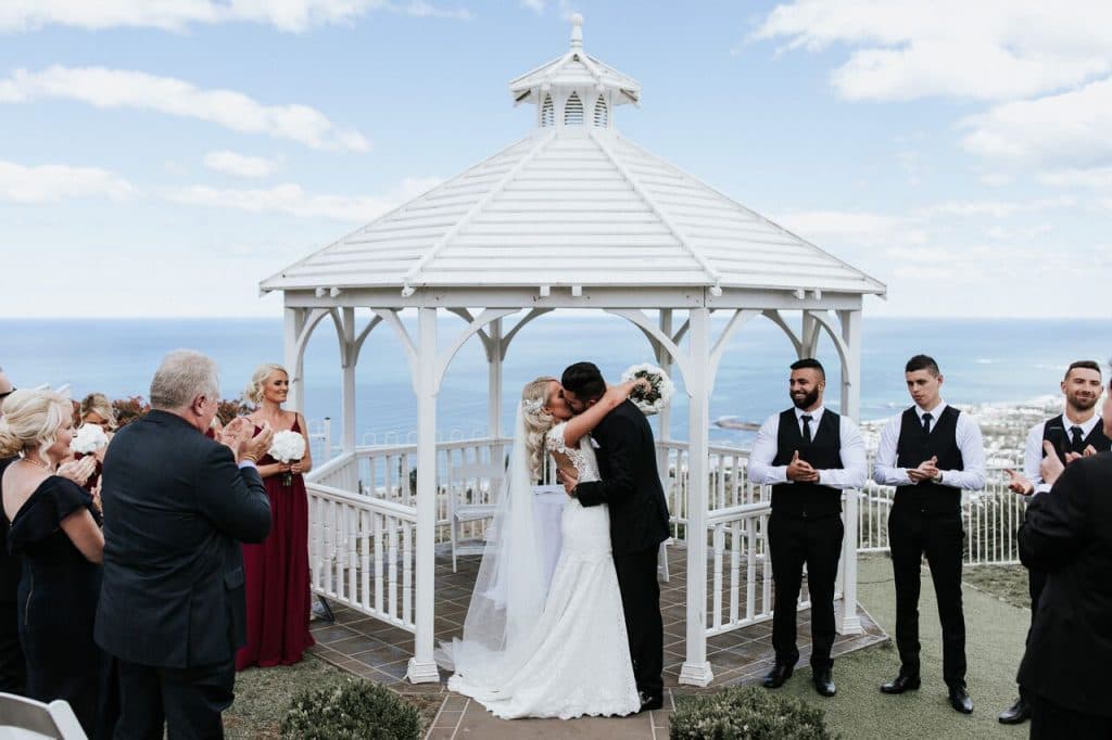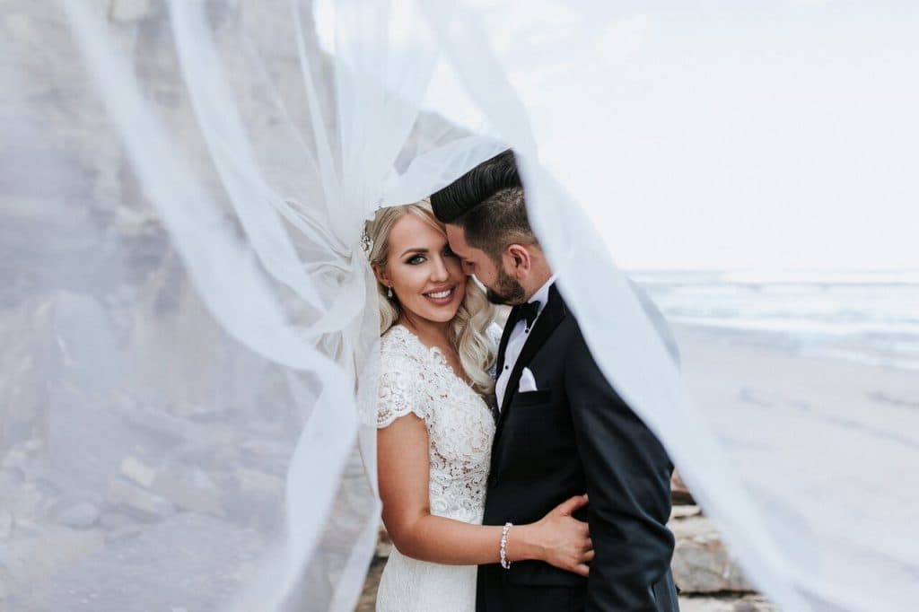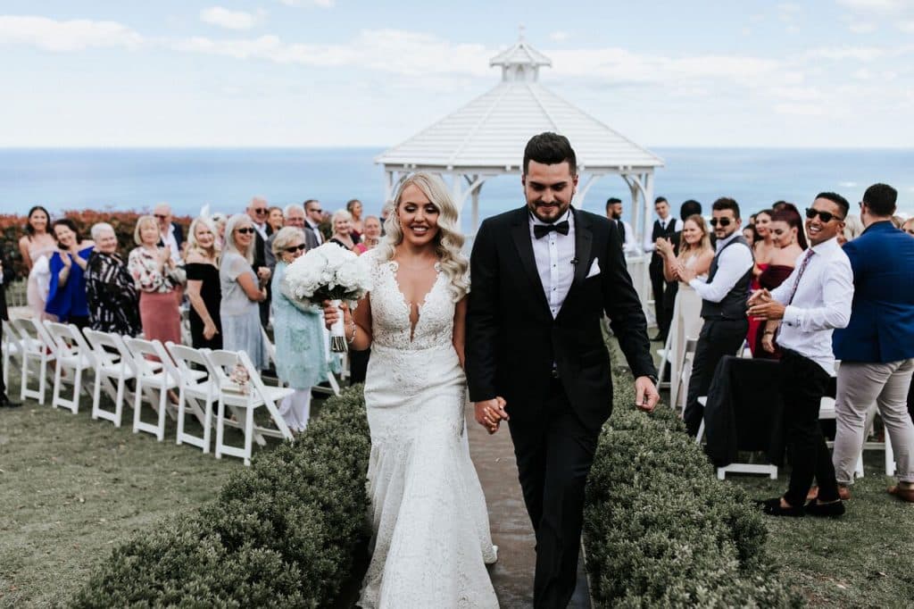 The stunning ceremony on a beachside cliff in Wollongong, combined with the glamorous reception, created a gorgeous wedding. With a white, black and gold theme, the couple was overjoyed with the magical look of their dream wedding.