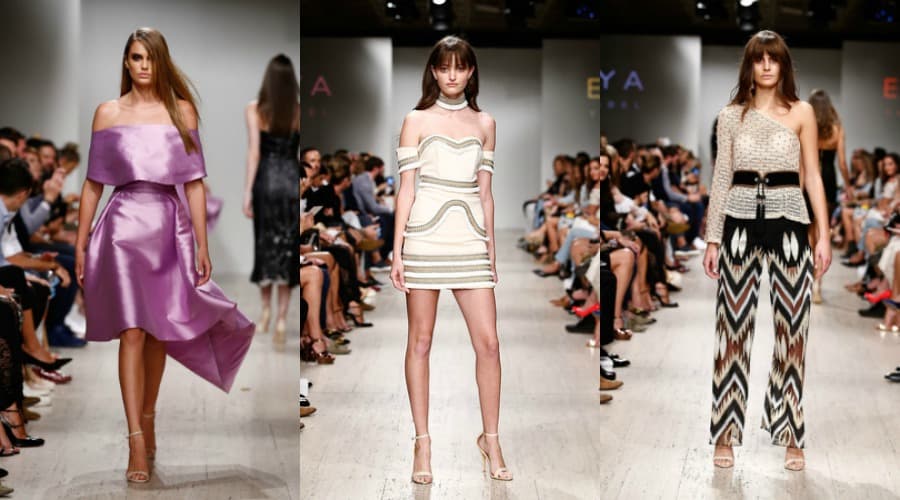 The combined benefits of off-shoulder tops and gowns is airy and romantic. Sure, there is definitely a bohemian element to it, but a classic, great and constant style never goes out of fashion. Eliya the Label showcased natural toning which resembles the tribes of Africa. The short dress and tops with off-the-shoulder can give a woman a longer and leaner look – thanks for the tip Eliya.