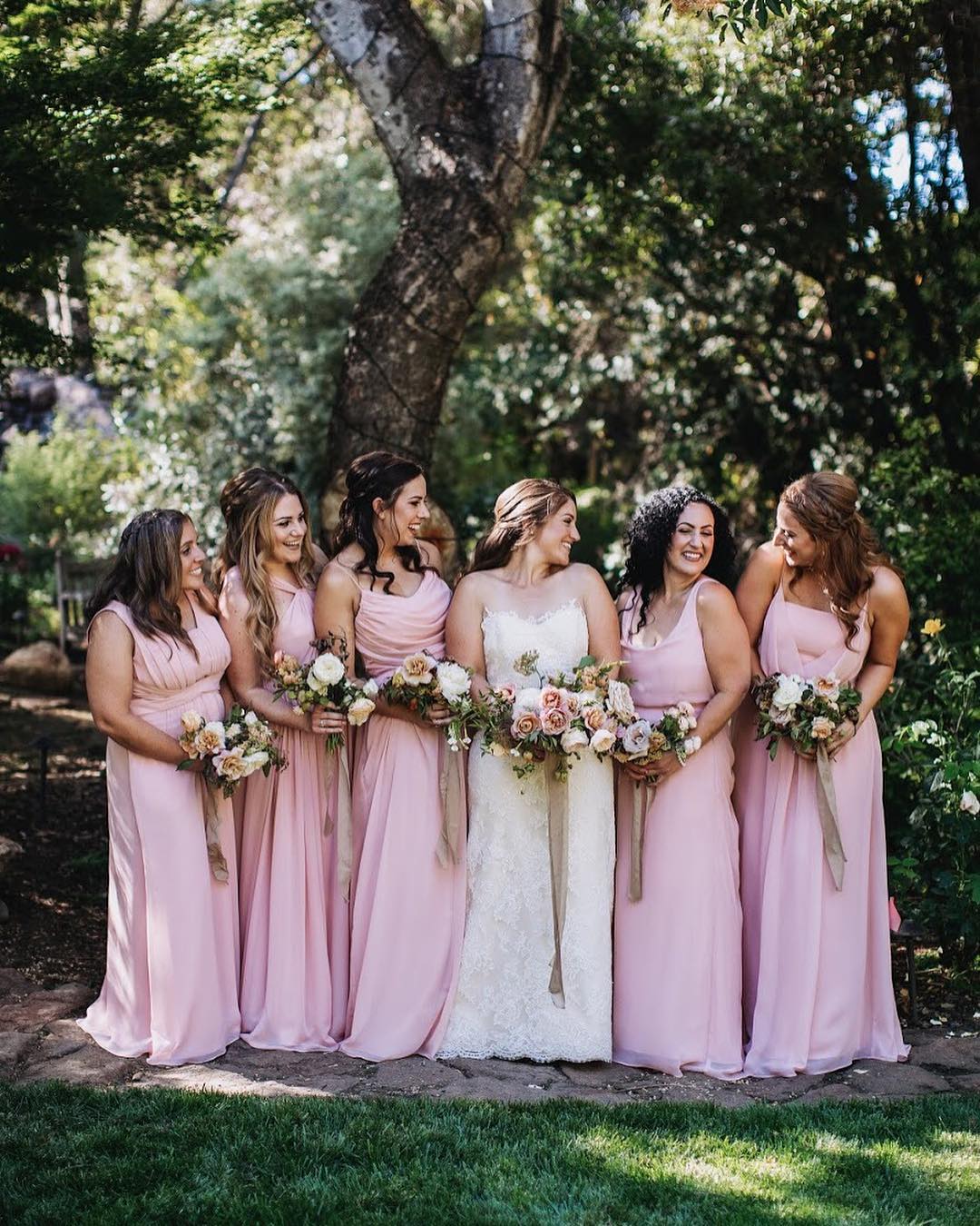 Picking out gowns for your bridal party is no easy task. It’s hard enough to find a stunning dress for one person, let alone a dress that’ll work for every one of your bridesmaids. That’s why we’ve fallen in love with this gorgeous trend. Brides are now ditching the idea of identical bridesmaids, and are instead choosing to have gowns that complement each other. Think the same colours, but different styles. Or, the same style, but different colours. OR completely differen