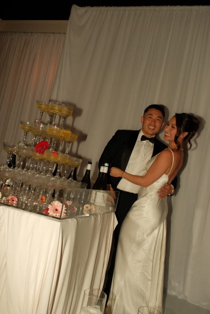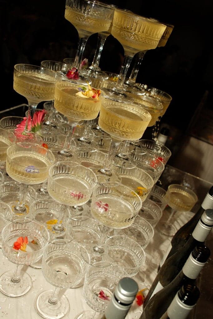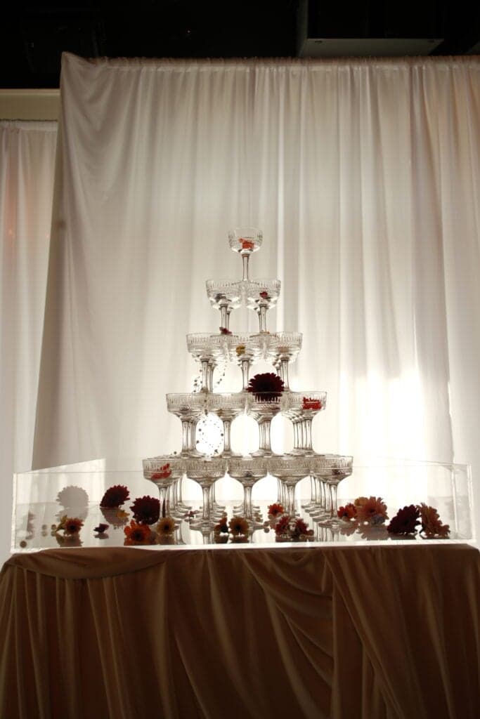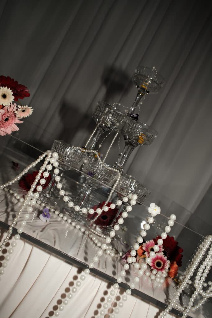 The drinks never stopped flowing. The champagne tower, layered with dried florals and glowing glasses, became a centerpiece of both the styling and the celebration. It was less of a moment and more of a recurring event throughout the night.