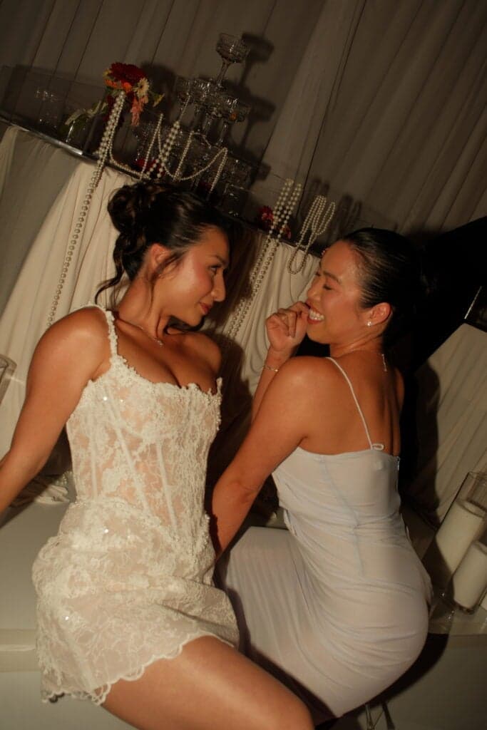 Champagne pouring, friends cheering mid-dance, Louise spinning in a mini lace dress, Polaroids in hand, soft focus, grain, laughter, movement. It was honest. It was messy in the best way. And it preserved the essence of the night exactly as it happened.
