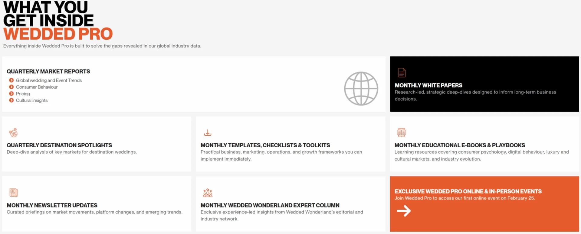 Wedded Pro offers ongoing, structured insight to help you make clearer, data-backed decisions in a fast-changing market.