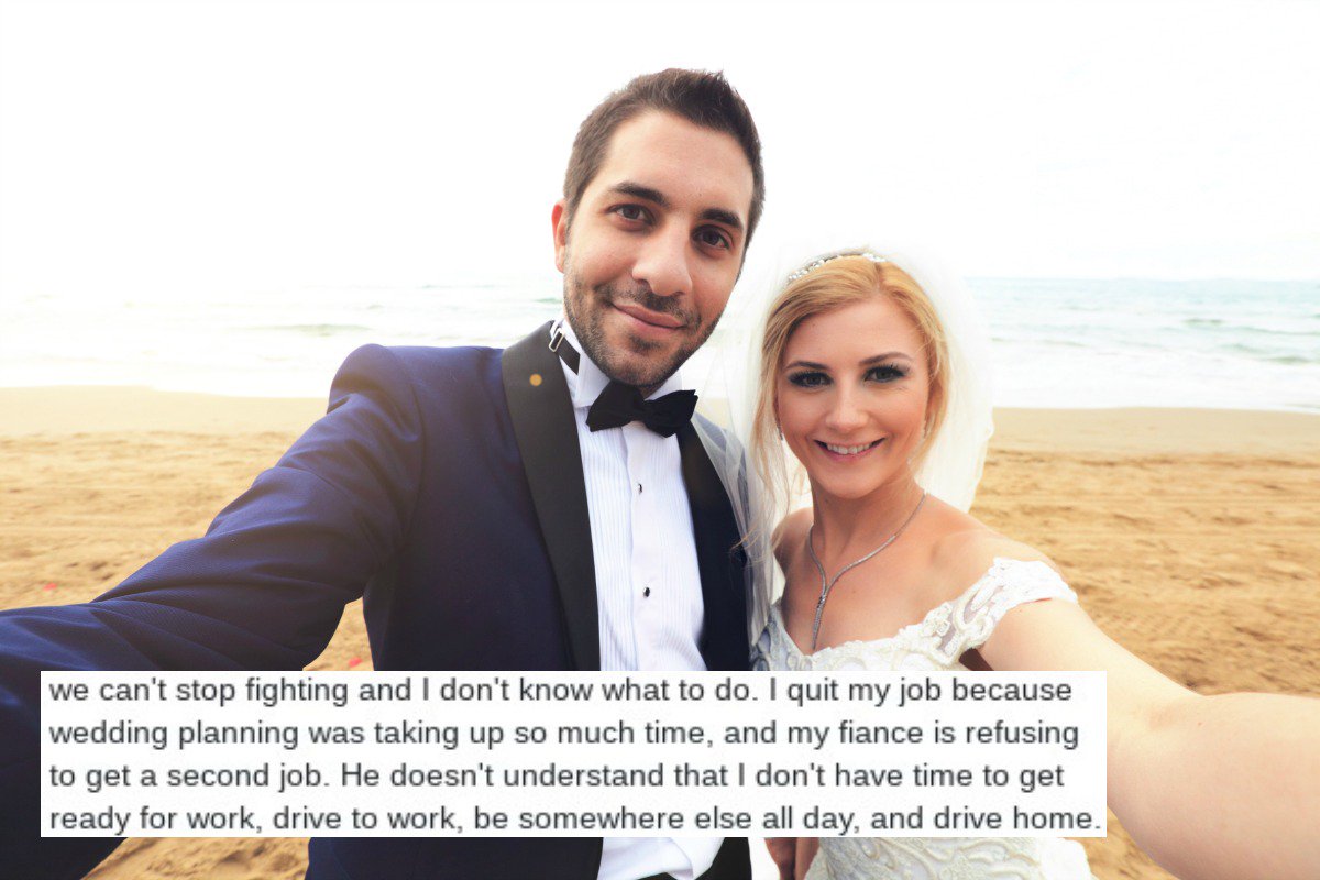 The bride-to-be explained that the couple have been fighting a lot recently and that she has quit her job due to the wedding planning taking up so much of her time and that her fiancé is refusing to get a second job.