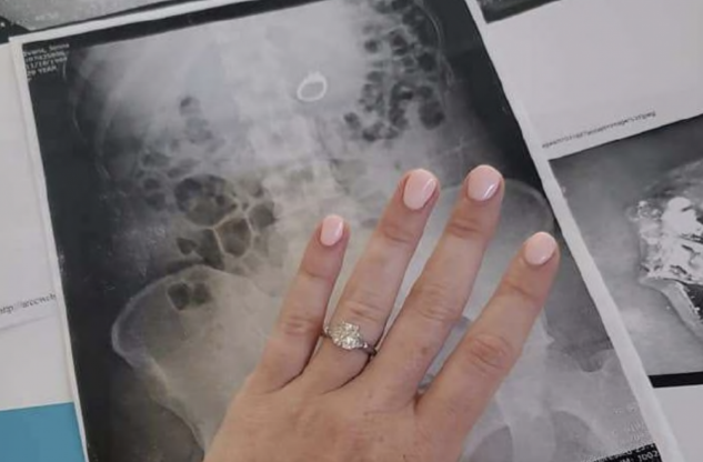 A horrified bride-to-be has revealed she swallowed her own engagement ring during a nightmare and had to have it surgically removed. Jenna Evans revealed to The Sun that she was horrified when she woke up to find her engagement ring missing, following a terrifying nightmare in which she was led to believe that she needed to eat her ring, to protect it. Source: The Sun Taking to Facebook, Jenna shared shocking x-ray images and stated “I was having a dream that I was in a very sketchy si