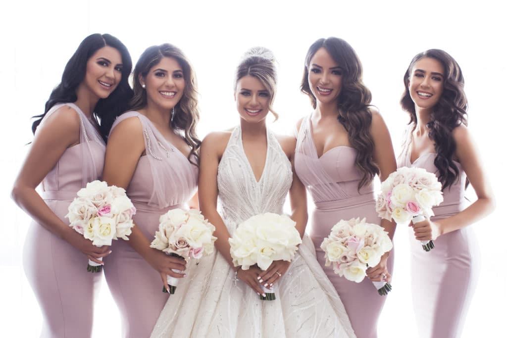 Bride Stephanie was picture perfect, dressed in an exquisite and dazzling ball gown , complemented perfectly with a soft up do and delicate makeup. Her Bridesmaids stood by her side in beautiful pink gowns to complete the bridal look!