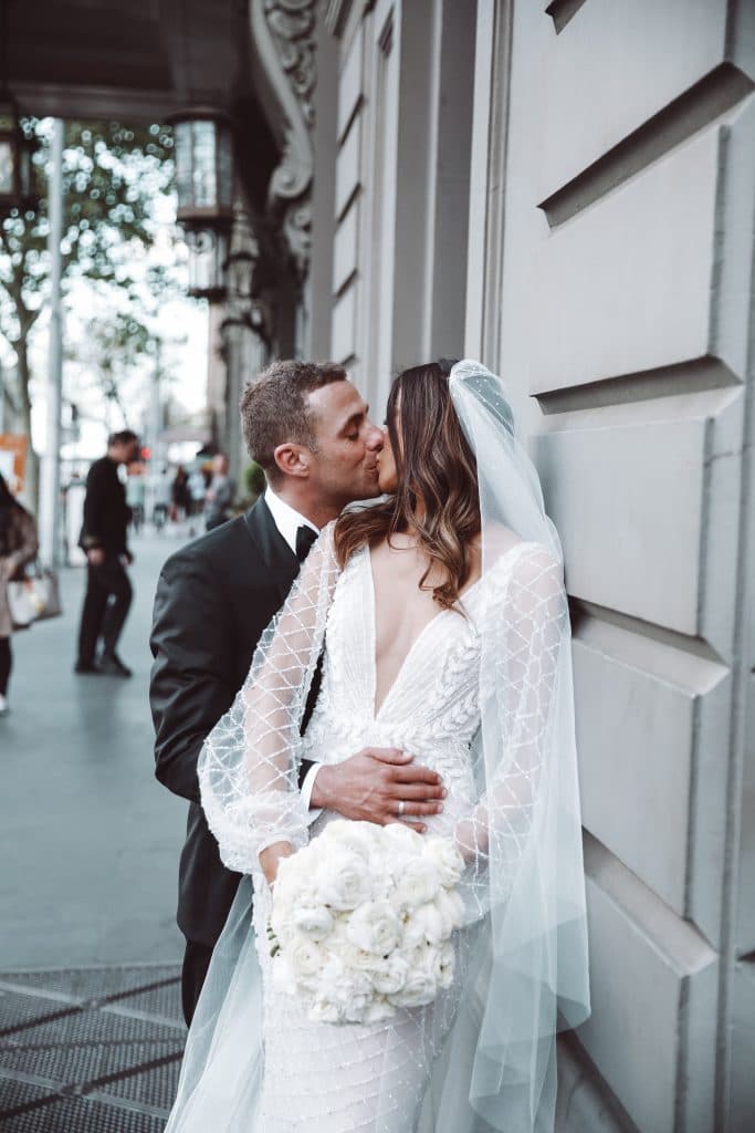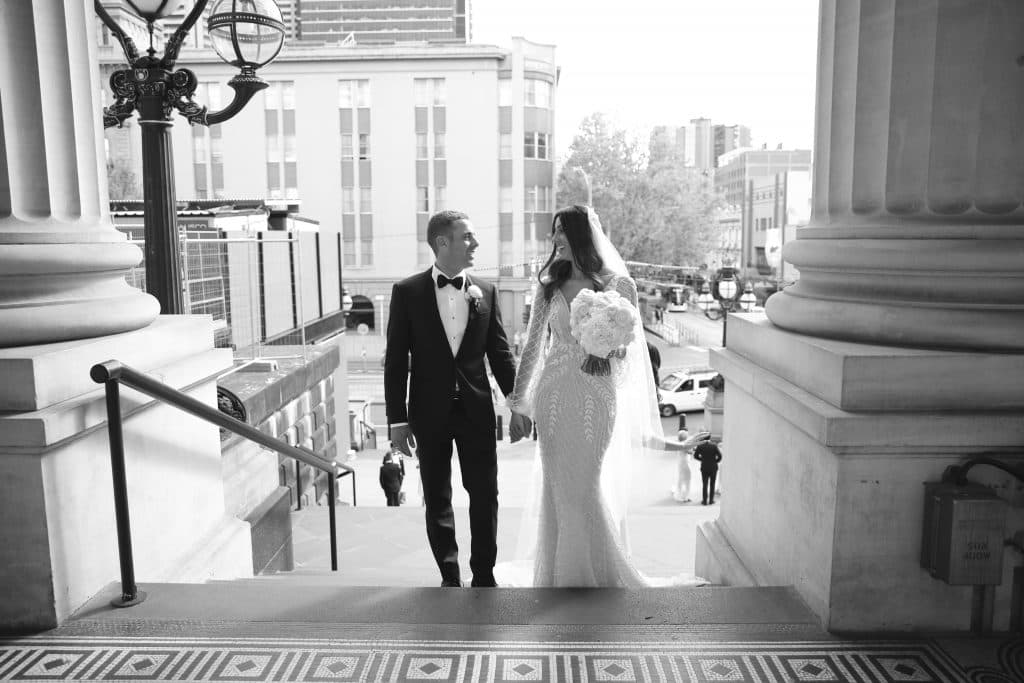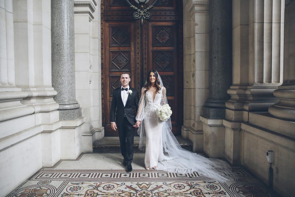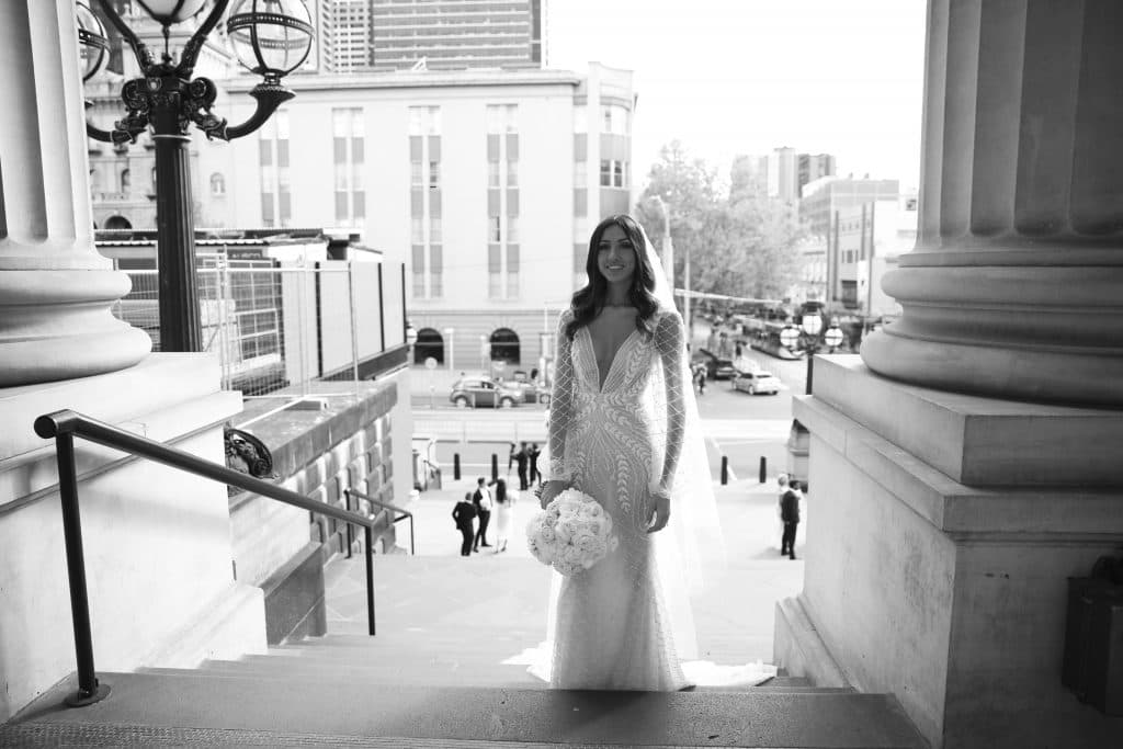 Photographer: APL Photography, Ceremony Venue: Sts. Anargiri Greek Orthodox Church Oakleigh, Reception Venue: The Glasshouse, Cinematographer: Pro Eye Videography, Wedding Planner: The Luxx Co, Entertainment: Band: Rythmos Band & DJ: Music Box Entertainment, Bridal Dress Designer: Leah Da Gloria, Bridal Shoes: Valentino, Bridal Jewellery: Johnny Loves Rosie, Engagement Rings: Top Image Jewellery, Bridesmaid Dresses Designer: Camilla and Marc, Flower Girl Dresses Designer: Princess Boutique, Groom’s Suit: Hugo Boss, Groomsmen suits: Oxford, Pageboy Suit: Bardot Junior, Cake Designer: Vanilla Cakes and Lounge, Invitation Designer: State of Reverie, Florist: Flowers by Brett Matthew John, Favours: National Breast Cancer Council Donations, Hairdresser: Samantha Tayla Hair, Makeup Artists: Isabella Quinn Make Up Artist