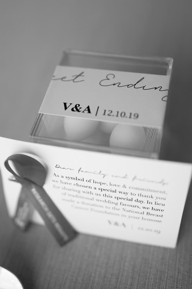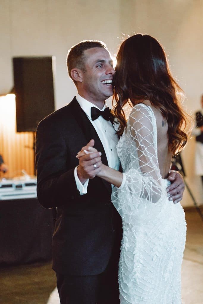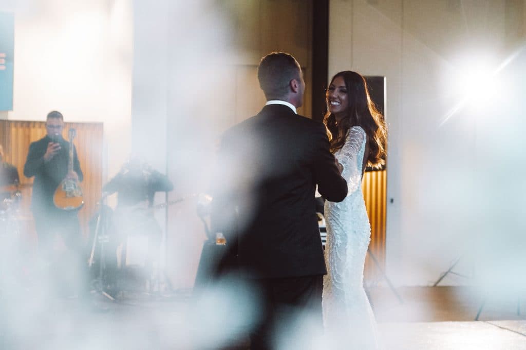 “During the canapes part of our reception, instead of hiding out in the green room and being revealed for the first time once everyone was seated, we opted to mingle with our guests. This gave us the opportunity to chat, drink and share moments with our family and friends. Our guests agreed that it was special to spend the extra time together and thought it set the vibe for the fun wedding that was about to begin.“