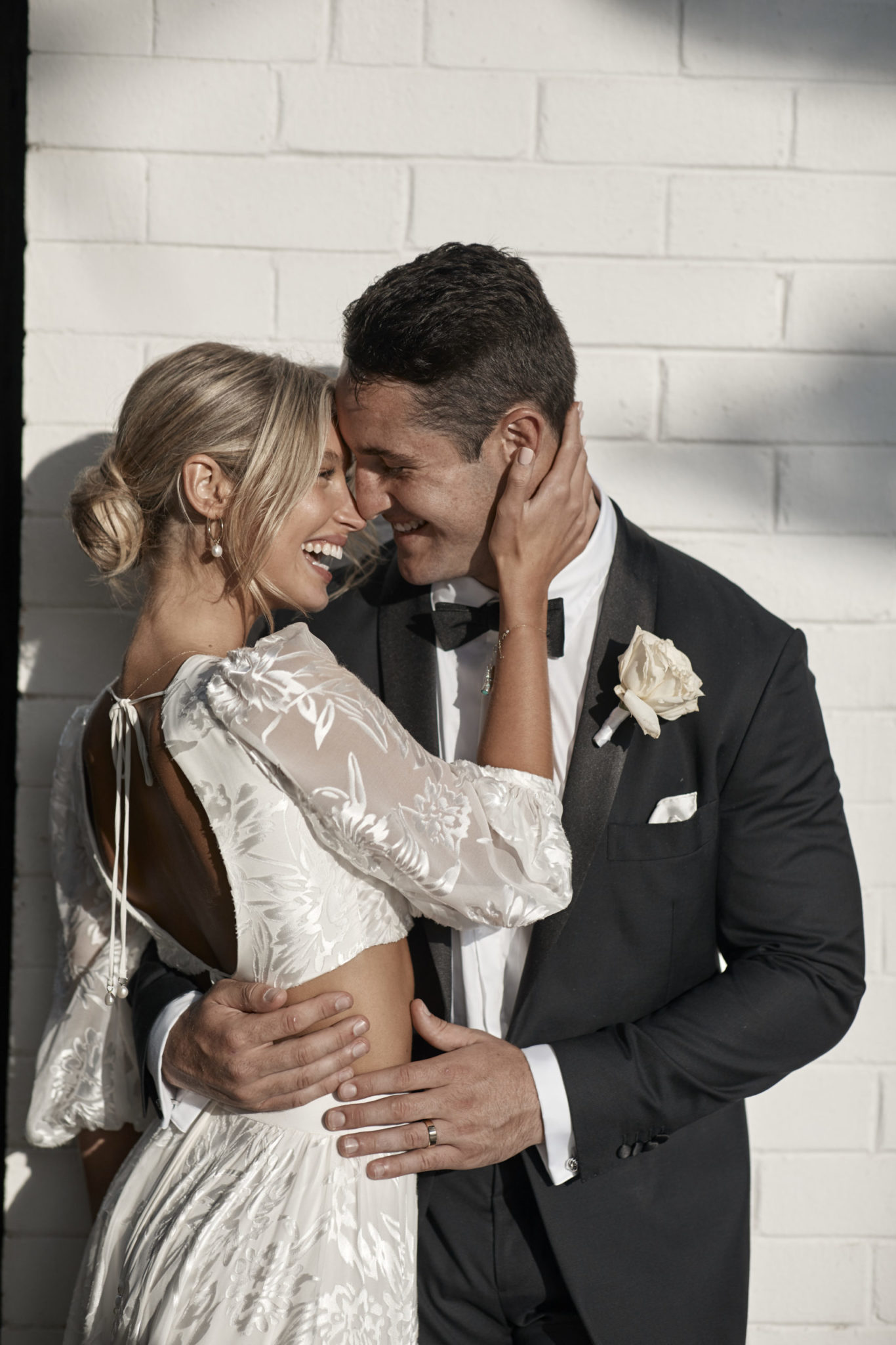 Sydney based model Harmony Butcher and professional NRL player Nathan Butcher married in a gorgeous Palm Beach waterfront ceremony surrounded by her nearest and dearest. The bride wore a custom-designed two-piece gown by Grace Loves Lace, The brand has now just released the gown, now name ‘Behati’ as an online exclusive after an influx of requests by GRACE brides. “The design was a gorgeous two-piece gown with a fitted waist and flowy skirt with a backless, sheer sleeve top. We decided t