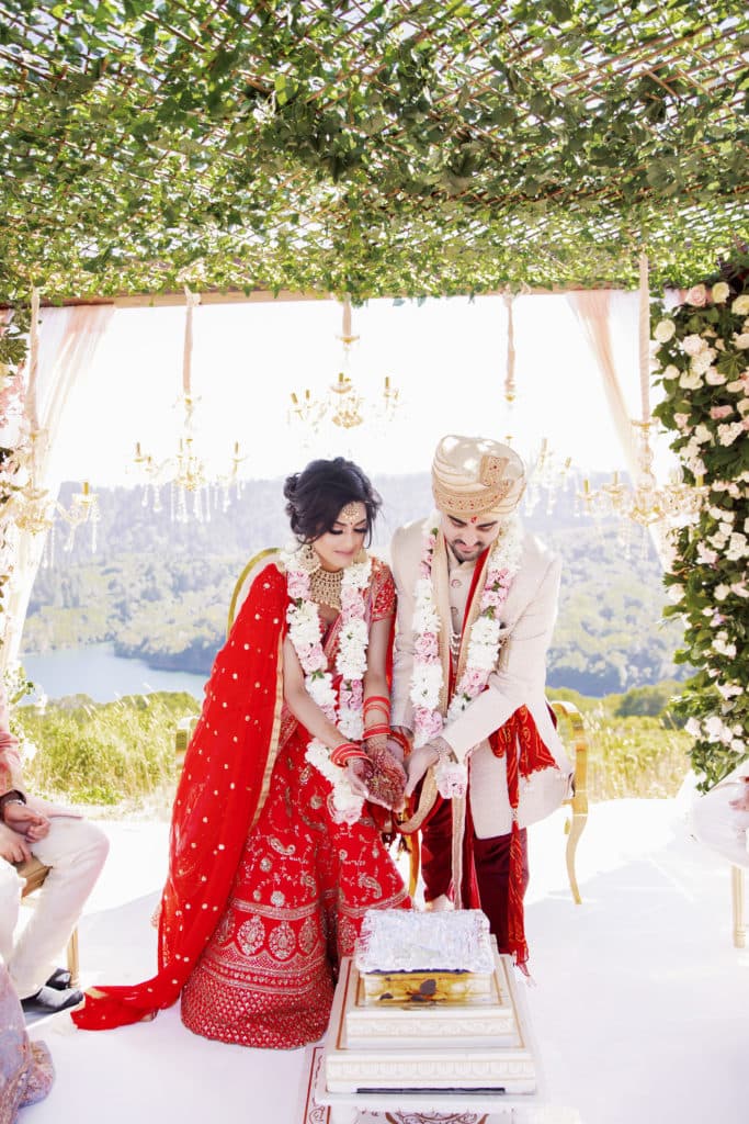 Photography & Videography: Rene Zadori Photography, Ceremony Location: Fairview Crystal Springs, Coordination & Event Designer: Event Solutions, Officiant: Nilesh Pandyaji, Florals: Flowers by Edgar, Macio Oliveira, Makeup & Hair: Royal Blush Studio, Entertainment: DJ Tanveer, Reception Rentals: Fine Linen Creation, Catering: Jalsa, Cake: Rachel’s Cake
