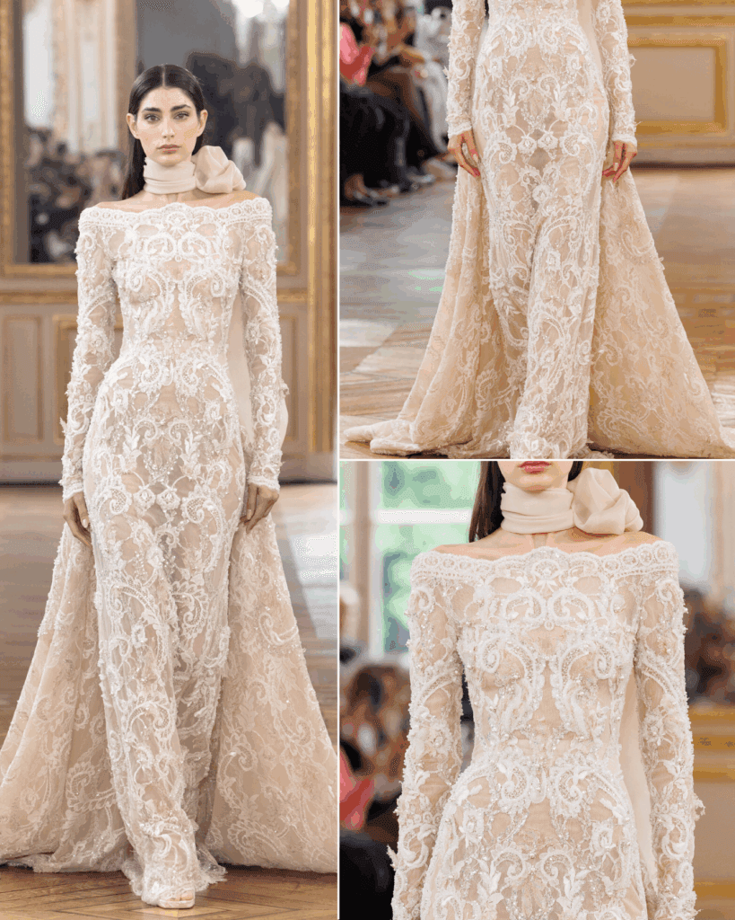 When it comes to couture craftsmanship, Tony Ward is a master of balance. This season, the collection took cues from Baroque architecture, blending the extravagance of the past with a sleek, modern twist.