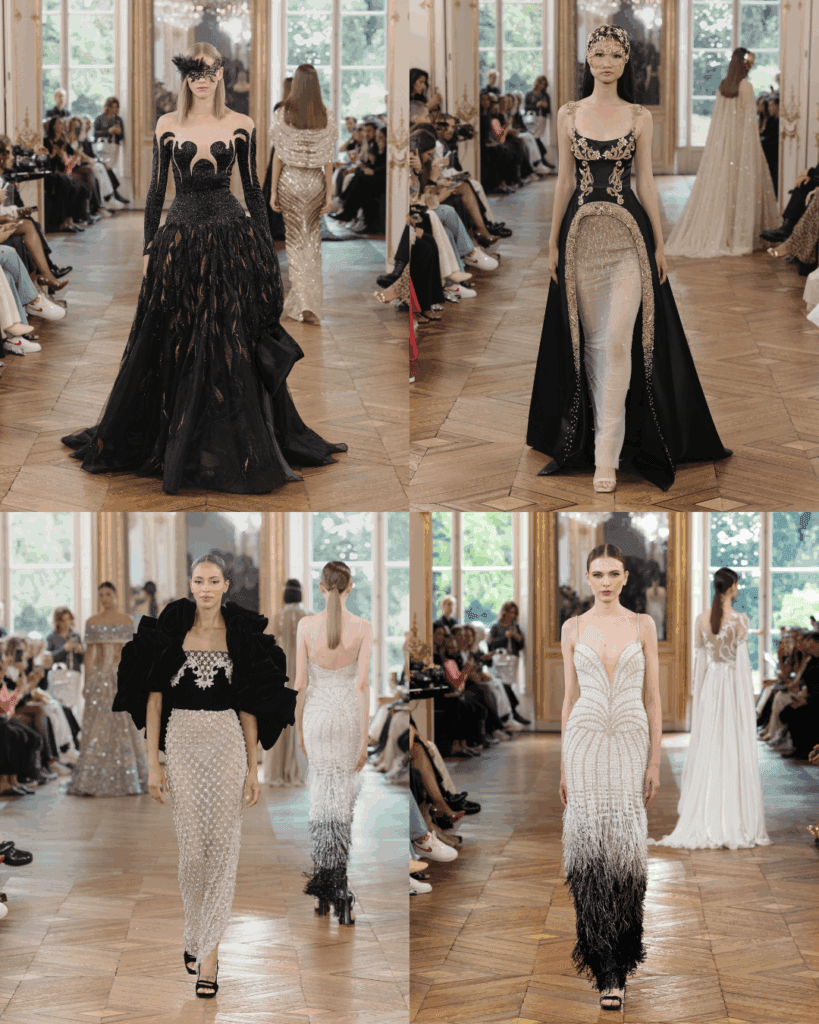 The Tony Ward Couture Fall Winter 2025/26 show was an immersive experience from start to finish. It wasn’t just about showcasing beautiful garments,it was about telling a story. The show opened with models wearing intricately designed masks, setting the tone for what was to come. Every glance was an act, every movement a performance.