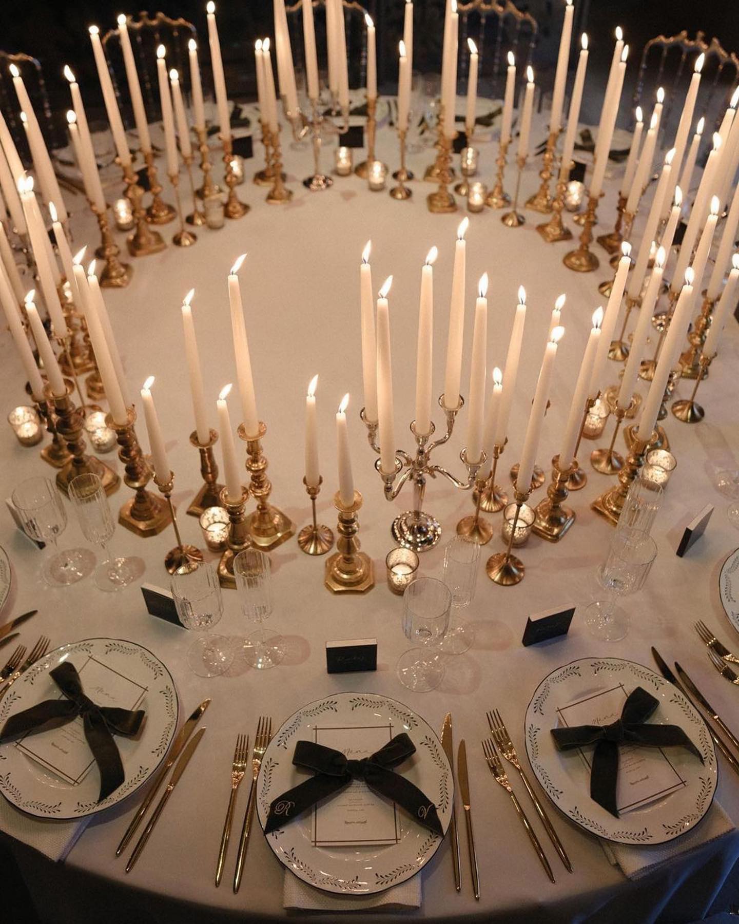 To complement the enchanting candles, elevate your place settings with a touch of uniqueness. Imagine each plate adorned with a beautifully tied bow, adding a refined and sophisticated touch to your table decor. These unique place settings, combined with the warm embrace of candlelight, create a setting that is both intimate and unforgettable.