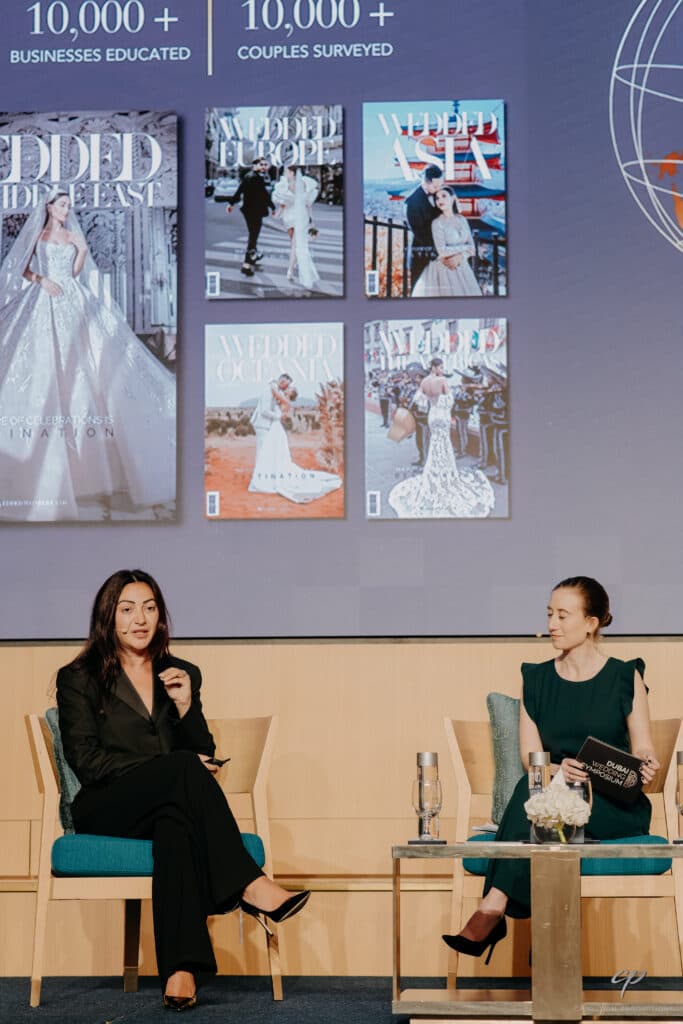 Conference day at the Taj Exotica Dubai brought together some of the world’s most influential wedding planners, keynote speakers, and industry stakeholders. Wedded Wonderland’s Founder, Wendy El-Khoury, graced the event as a guest speaker, delivering an enlightening talk and sharing her wealth of industry expertise in a fireside chat about ‘Socials, Socials, Socials!’ alongside the Founder of My Greatest Wedding, Hella Huizinga.