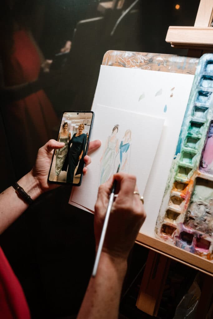 Live music by The Rockaways from ALR Music set the tone; their melodies weaving through the space like something out of a cinematic romance. Poet Jen Feroze captured hearts with words that danced between the intimate and the grand. And of course, Illustrator Lucy McLoughlin brought moments to life in ink, offering bespoke keepsakes for guests; an artful souvenir of a night to remember. The cake was a masterpiece to behold, brought to us by Yevnig Davis, and capturing all these magical moments was Shayben Moussa of Siempre Weddings.