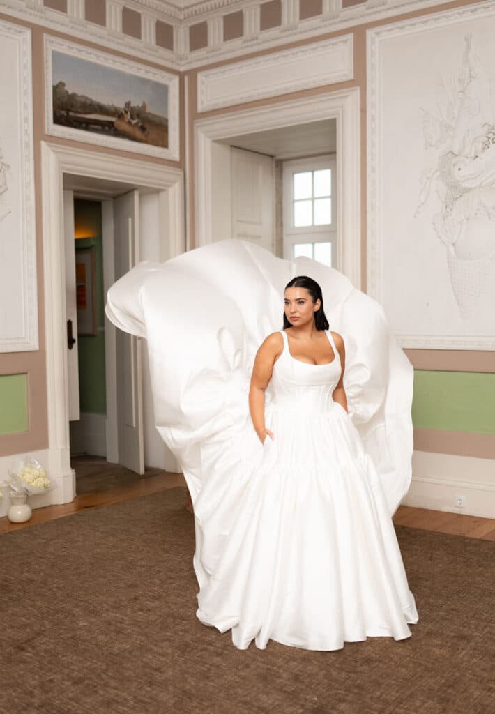 “My wedding dress was designed by a renowned Barcelona-based brand. As a plus-size model and fashion lover, I wanted to wear a special dress for each event that matched the theme. I tried on more than 30 dresses, but because of my body type, it was challenging to find the perfect one. The industry is still not fully accommodating different body types, so I decided to visit Joana Castro Atelier, the top bridal designer in Portugal, for two custom-made dresses—for the welcome dinner and the after-party,” she shared.”