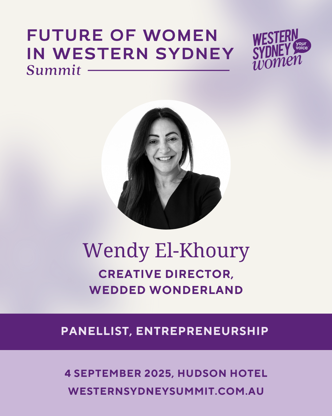 Wedded Wonderland’s Creative Director and This is Wondergroup co-founder Wendy El-Khoury will help center women’s voices in the region’s biggest conversation about jobs, industry and opportunity.When big-picture ideas meet real-world experience, good things happen. That’s the energy Wendy El-Khoury is bringing to the Future of Women in Western Sydney Summit on September 4, 2025. As Gold Partner, Wendy and Wedded Wonderland will amplify a crucial message: when Western Sydney grows, women mus